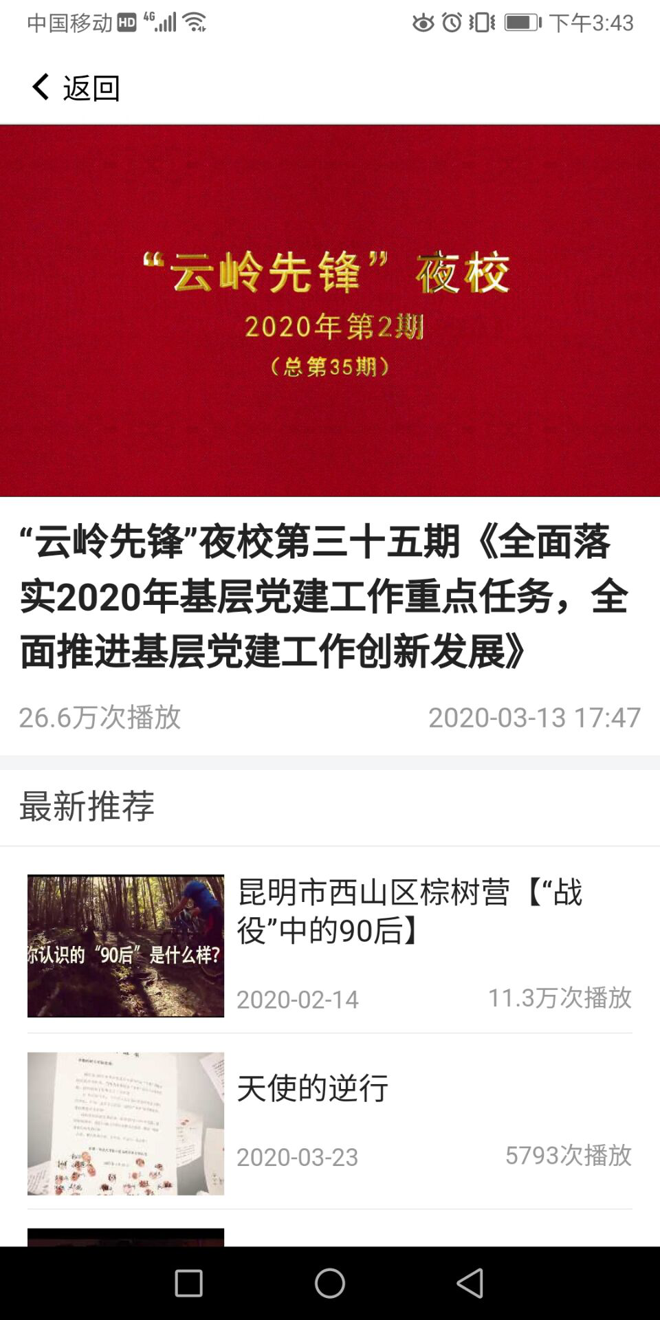 3月23日,在疫情防控的特殊时期,国土beat365官方网站党总支组织各支部通过“云岭先锋”APP点播观看第2期夜校节目。夜校节目围绕“全面落实2020年基层党建工作重点任务,全面推进基层党建工作创新发展”这一主题展开,省委组织部的同志回顾了四个主题年云南省基层党建工作取得的实效,强调了今后基层党建工作的重点,要进一步增强政治担当、切实履职尽责、改进工作作风,并要求各级党组织和广大党员锐意进取、勇担使命,为实现第一个百年奋斗目标,谱写中华民族伟大复兴中国梦的云南篇章作出新的更大贡献。各支部党员结合新学期各自工作、学习实际,作了线上交流。大家一致表示,乌云遮不住升起的太阳,疫情挡不住春天的脚步,在新的学期,将发挥共产党员先锋模范作用,以自身的努力争取更大的成绩。