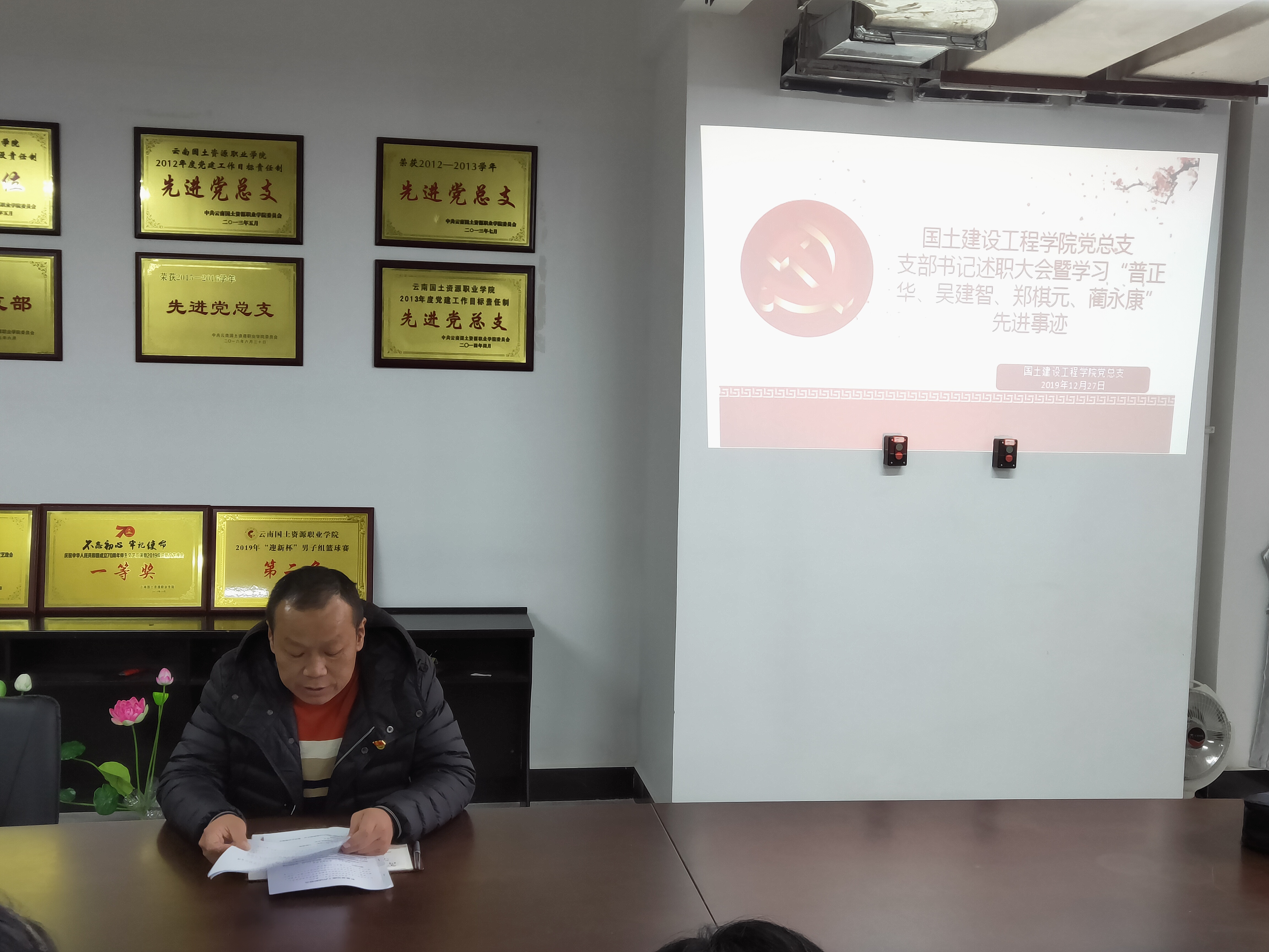 12月27日中午明尚楼c301,国土beat365官方网站党总支组织召开支部书记述职会。建工学院全体党员和非党员教师共34人参会,会议由党总支书记高昆同志主持,工程管理党支部书记张宁同志、工程造价党支部书记廖术龙同志、后勤党支部书记王春莲同志分别就2019年抓支部党建工作情况进行述职。