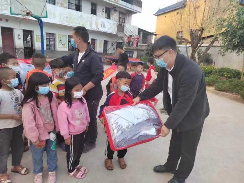 此次爱心活动捐助对象是哈鲁小学的21名寄宿生,捐赠的物品是适宜孩子们冬季用的防寒毛毯,每一份毛毯都饱含着beat365官方网站党总支对孩子们的一片爱心。由于疫情原因,建设工程学院党总支未能赶往绿春县,由建设工程学院驻绿春县扶贫教师刘艾吉同志作为代表,云南国土资源职业学院的其他驻村老师和哈鲁村委会领导们积极参与,将御寒毛毯送到孩子们的手中,并表达了对受助学生的殷切关怀。