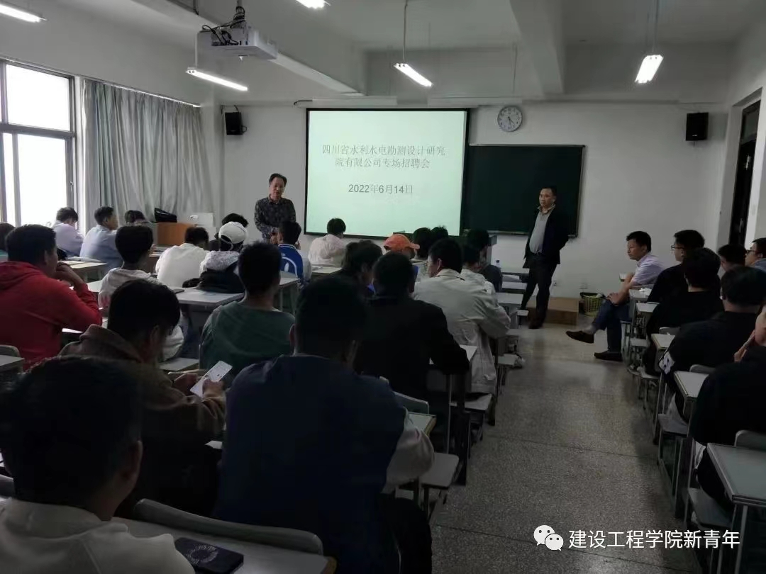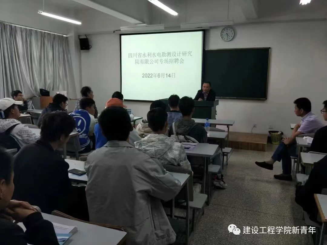 6月14日,beat365官方网站在明尚楼C207开展了优质企业进校园宣讲招聘活动。本次宣讲会邀请了四川省水利水电勘测设计研究院有限公司进行现场宣讲招聘, 20级钻探班全体学生参加宣讲会。