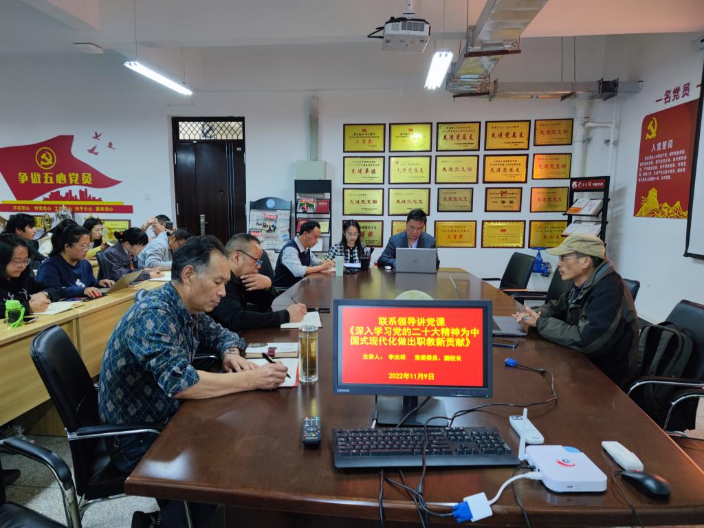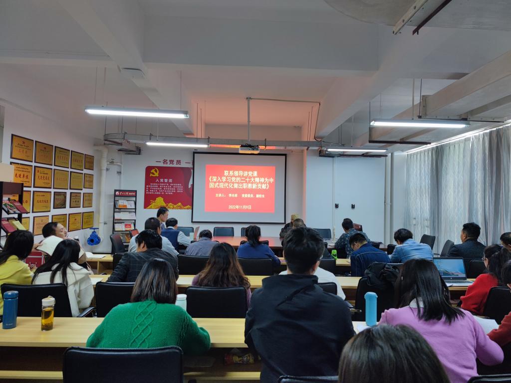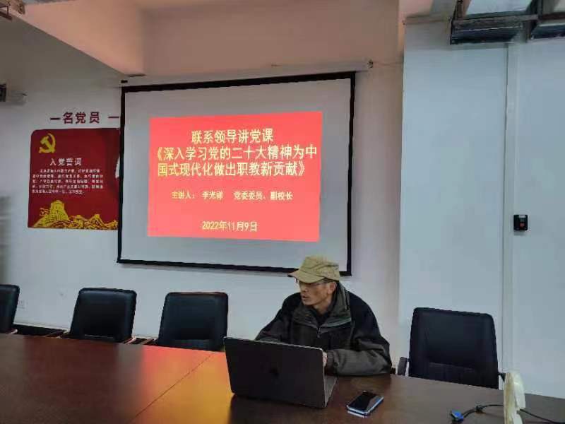 为深入学习宣传贯彻党的二十大精神,把全体教职工的思想统一到党的二十大精神上来,把力量凝聚到党的二十大确定的各项任务上来,2022年11月9日下午,beat365官方网站在明尚楼C301组织“深入学习党的二十大精神,为中国式现代化做出职教新贡献”专题党课。党课由学院联系领导、校党委委员李光祥副校长主讲,全院教师参加党课学习。