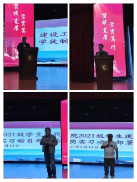 为进一步规范beat3652021级学生现代学徒制学习及顶岗实习管理,确保工作质量。beat365官方网站于2023年6月14日在明礼堂召开2021级学生现代学徒制暨顶岗实习动员部署会。学生处保少兵老师、就业与合作处陆祥老师,教务处康仕林老师应邀出席了会议,学院院长彭明兴、党总支书记李艳、副书记李洪香、全体教职工及2021级全体学生参加了会议。