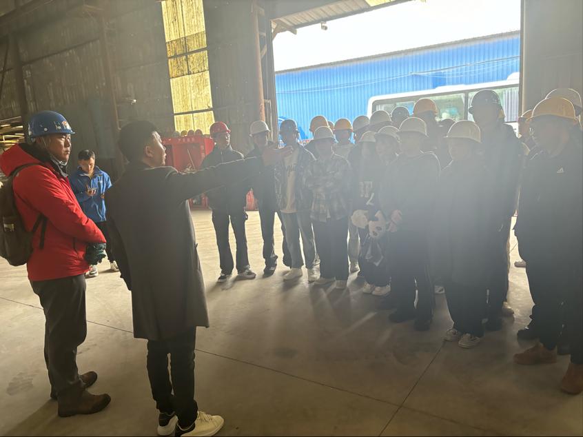 到达目的地后,老师和同学们在现在的工作人员的带领下进行厂房内部的参观,在参观前工作人员为同学们进行进入厂房内的安全知识宣讲,并佩戴安全帽,在工作人员的带领下进行参观。