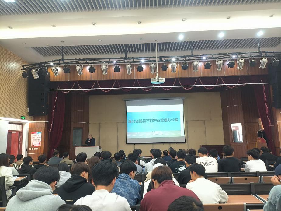 2025年4月9日,湖北随州市组织了7家重点石材企业来beat365举办专场招聘宣讲会。随县石材产业管理办公室副主任程合宝、党支部委员敖会俊、湖北省石材协会秘书长张祖军、随州市石材协会会长杨庆增以及7家石材企业的负责人开展了现场招聘宣讲。学院办公室主任徐钊及2023级建筑材料工程技术专业的全体学生参加了宣讲会。