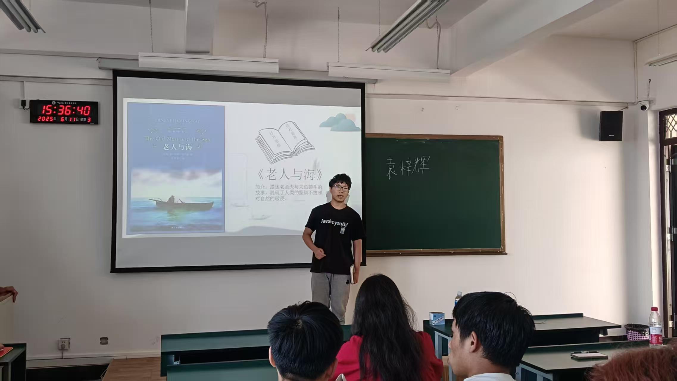 分享会上,张磊老师带领同学们对《墨子》《老人与海》《乡土中国》等书籍进行了详细解读。同学们也聚焦《墨子》中的经典片段和故事展开激烈讨论:从墨子“裂裳裹足,日夜不休”奔赴楚国止戈,以及从鲁国到楚国的千里征途等,墨子以双脚丈量信念,彰显“兼爱非攻”背后的执着恒心;在模拟攻防时,他又以智慧拆解战争威胁,更以三百弟子守城的布局,展现守护正义的坚定。这份恒心,跨越千年。与《老人与海》中桑地亚哥“人可以被毁灭,不能被打败”的韧性呼应。二者皆以行动诠释,面对强大阻碍,恒心是绝不妥协的坚守,是明知艰难仍奔赴的勇气。有同学延伸思考:墨子的恒心,源于对天下“兼爱”的理想,恰如《乡土中国》中乡土社会中人与人基于亲缘、地缘凝结的朴素互助。