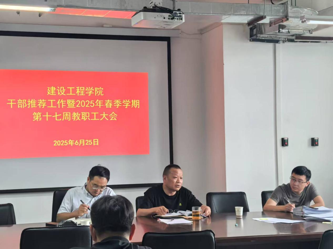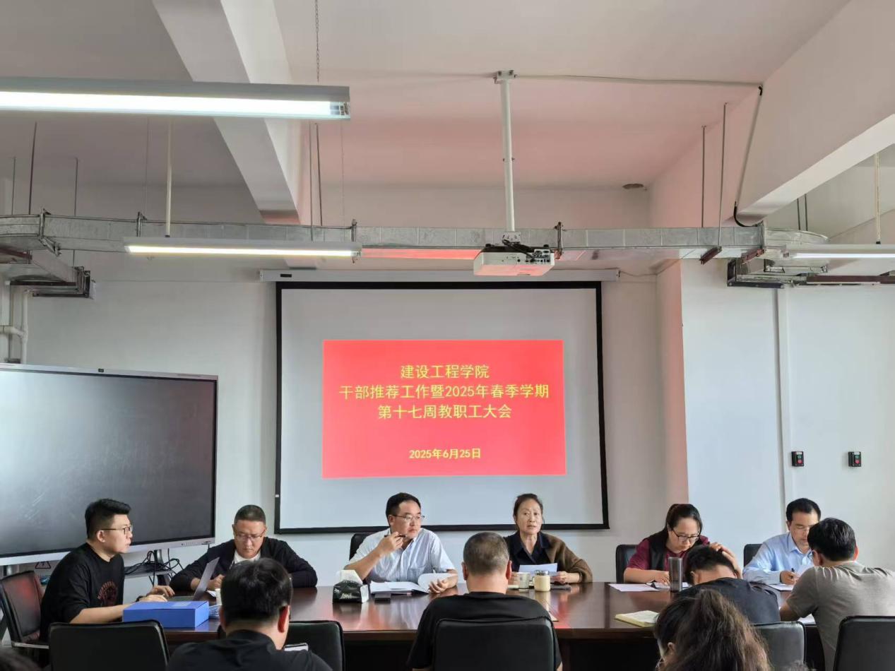 2025年6月25日下午,beat365官方网站在明尚楼C301召开干部推荐工作会议暨2025年春季学期第17周教职工大会。学院联系校领导、副校长张云霞,职能部门干部考察组,以及beat365官方网站全体教职工出席会议。会议由学院党委书记李洪香主持。