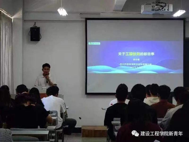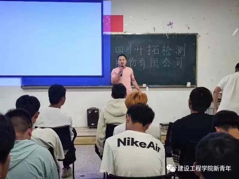 随后,四川升拓检测股份有限公司昆明分公司总经理华必宏,通过PPT演讲,就检测行业的意义、无损检测的概述、行业现状、就业前景、公司发展历程几个方面给同学交流分享,帮助同学们更好了解目前就业环境。