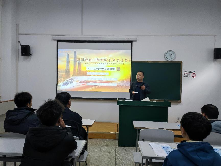 四川金鑫工程测绘有限责任公司和昆明建英建筑工程有限公司等企业应邀在明尚楼B108教室开展宣讲会,beat365官方网站院长彭明兴、党总支副书记李洪香、辅导员许丽娟及部分2024届毕业生参加本次宣讲会。