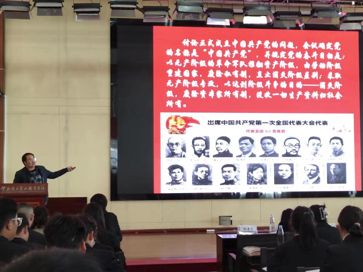 第二阶段,党总支副书记李洪香以“中国共产党历次代表大会基本情况”为题,为青马班的同学们讲授了第一堂党课,并结合实际案例,号召在座的青马学员在学习和生活中发挥先锋模范作用,为推动beat365官方网站的高质量发展贡献力量。