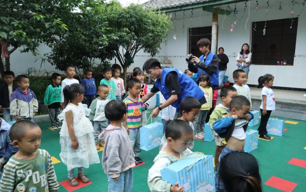 活动最后,实践团的老师和同学们为幼儿园的孩子们派发了礼物,为孩子们带去了无限欢乐,在实践团的引导下每一个孩子都在欢乐中有所收获,在互动中成长。