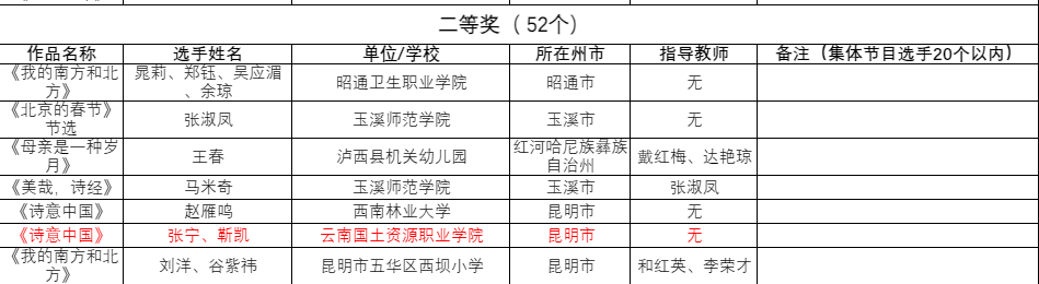 beat365教师张宁、靳凯作品《诗意中国》,荣获云南省第六届"云岭杯"中华经典诵写讲大赛“书香彩云南"诵读大赛二等奖。