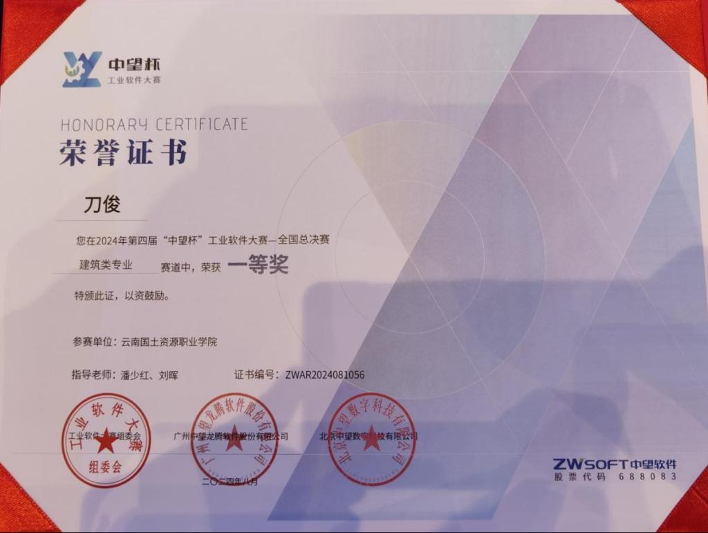 beat365学子刀俊同学(指导老师潘少红、刘晖)在第四届“中望杯”工业软件大赛高职组建筑类专业赛道中以全国第一名的好成绩荣获一等奖,平一梅同学(指导老师赵岩枫、孙永)获二等奖。本次比赛由广州中望龙腾软件股份有限公司、北京中望数字科技有限公司主办,据悉,本届竞赛吸引了来自国内30个省/自治区/直辖市的近800所院校的热烈响应,参赛学生人数超6600人。
