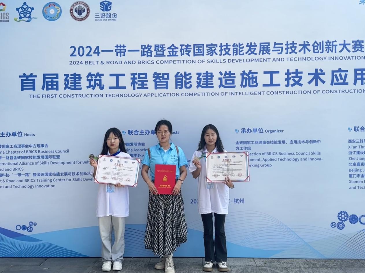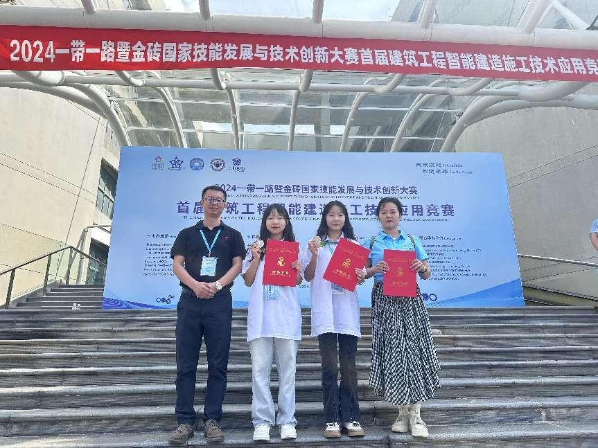 2024一带一路暨金砖国家技能发展与技术创新大赛首届建筑工程智能建造施工技术应用赛项全国总决赛于2024年9月27日至28日在浙江杭州举行。由我校beat365官方网站老师崔译丹带队,2022级学生冷雨桐、王雄彦组成的参赛队伍参加了比赛,经过激烈角逐,我校学生荣获二等奖。据悉,本赛项为建筑施工领域在金砖大赛平台举办的首届赛事,共有来自全国高职院校的282支队伍参赛,是同类大赛中属覆盖区域最广、参赛规模最大、参与人数最多的赛项之一。