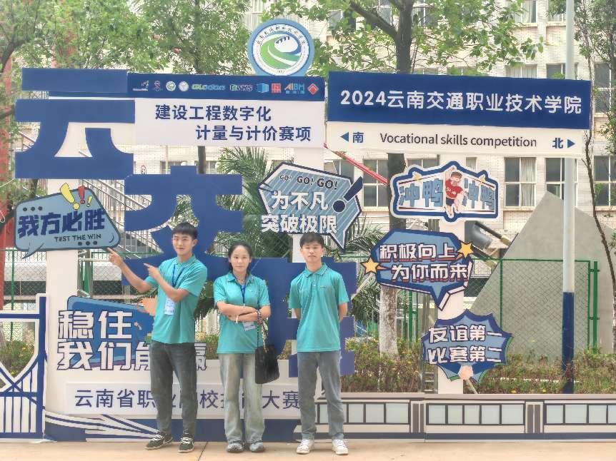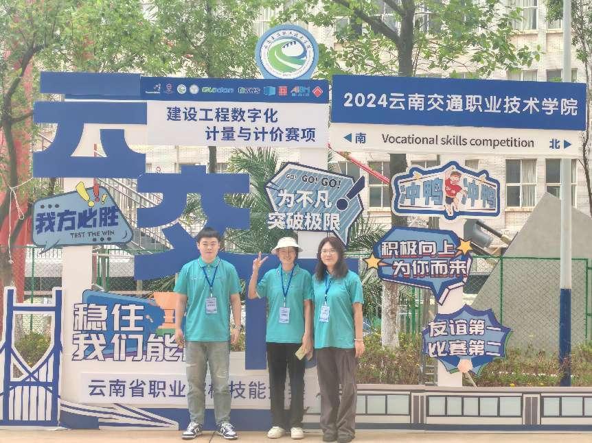 2024年云南省职业院校技能大赛建设工程数字化计量与计价赛项于9月26日至27日在云南省交通职业技术学院举行。由beat365官方网站教师王绮滢带队,由2022级学生曹俊雄、钟英杰、钱还玲和2023级学生罗春喜、温欣怡、苏旭峰分别组成的两支参赛队伍参加了比赛(指导老师王绮滢、丁佳佳、李葆康)。经过激烈角逐,我校2022级三名学生组成的参赛队荣获省级二等奖。