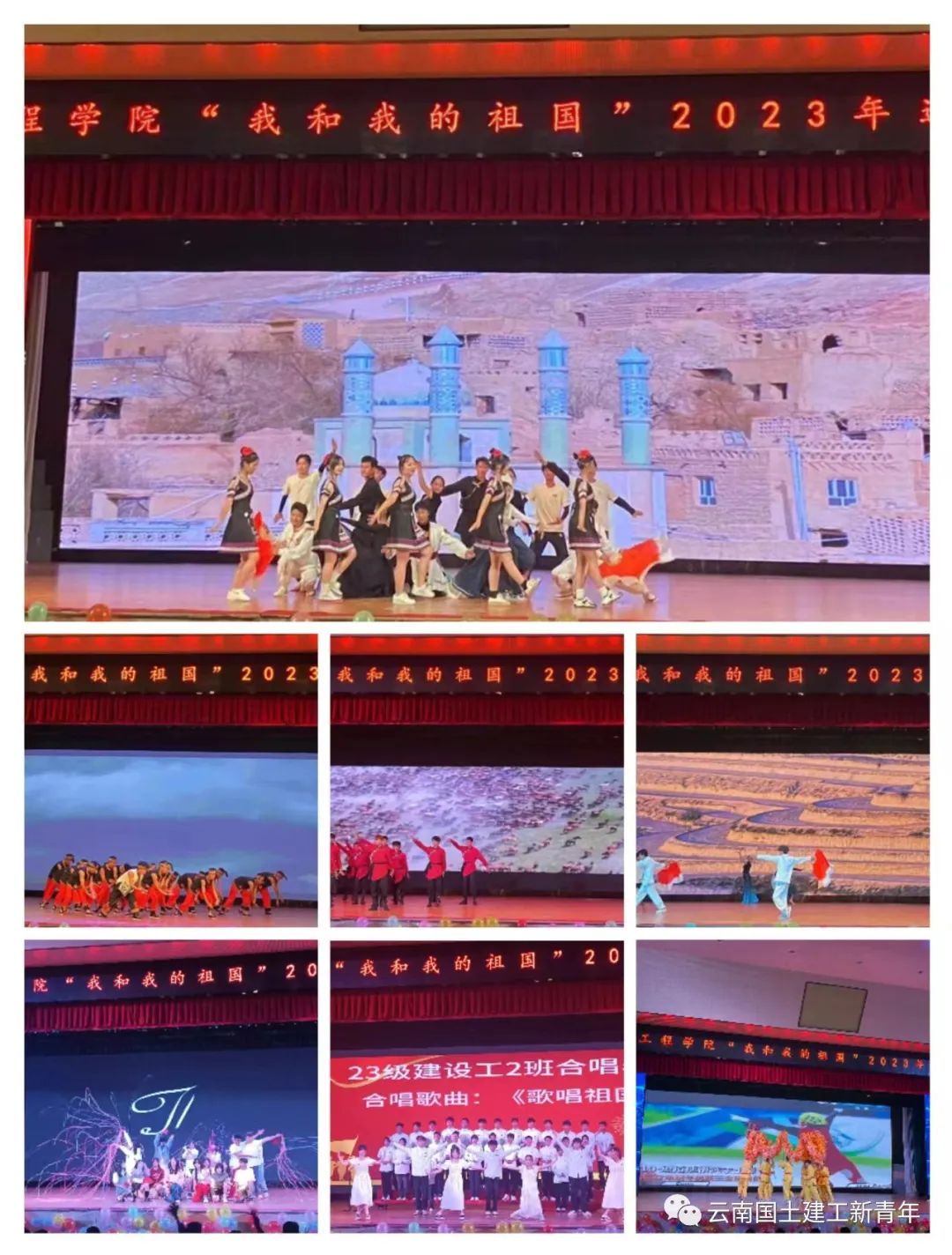 紧接着文艺汇演开始,大一新生们用《民族走秀》开场点燃全场,工程造价2班《震麟之骁》、地隧1班《武术表演》、建材1班《阿诗玛》等用舞蹈语言演绎中华传统文化之美。造价4班带来的《奔跑的青春》向我们展示了当代大学生的精神面貌。建管2班《歌唱祖国》、造价1班《羌寨欢歌》等向我们展示了建工学子的暖暖爱国心、浓浓民族情。
