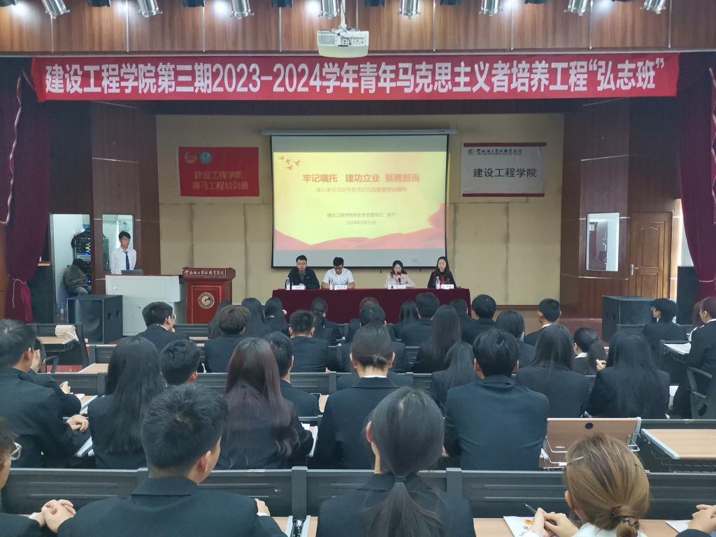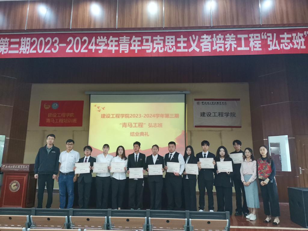 5月15日下午,beat365官方网站2023-2024学年“青马工程”弘志班结业典礼在光荣讲堂举行。张宁、刘艾吉、杨轲、许丽娟四位老师以及全体“青马班”学员参加了此次结业典礼。