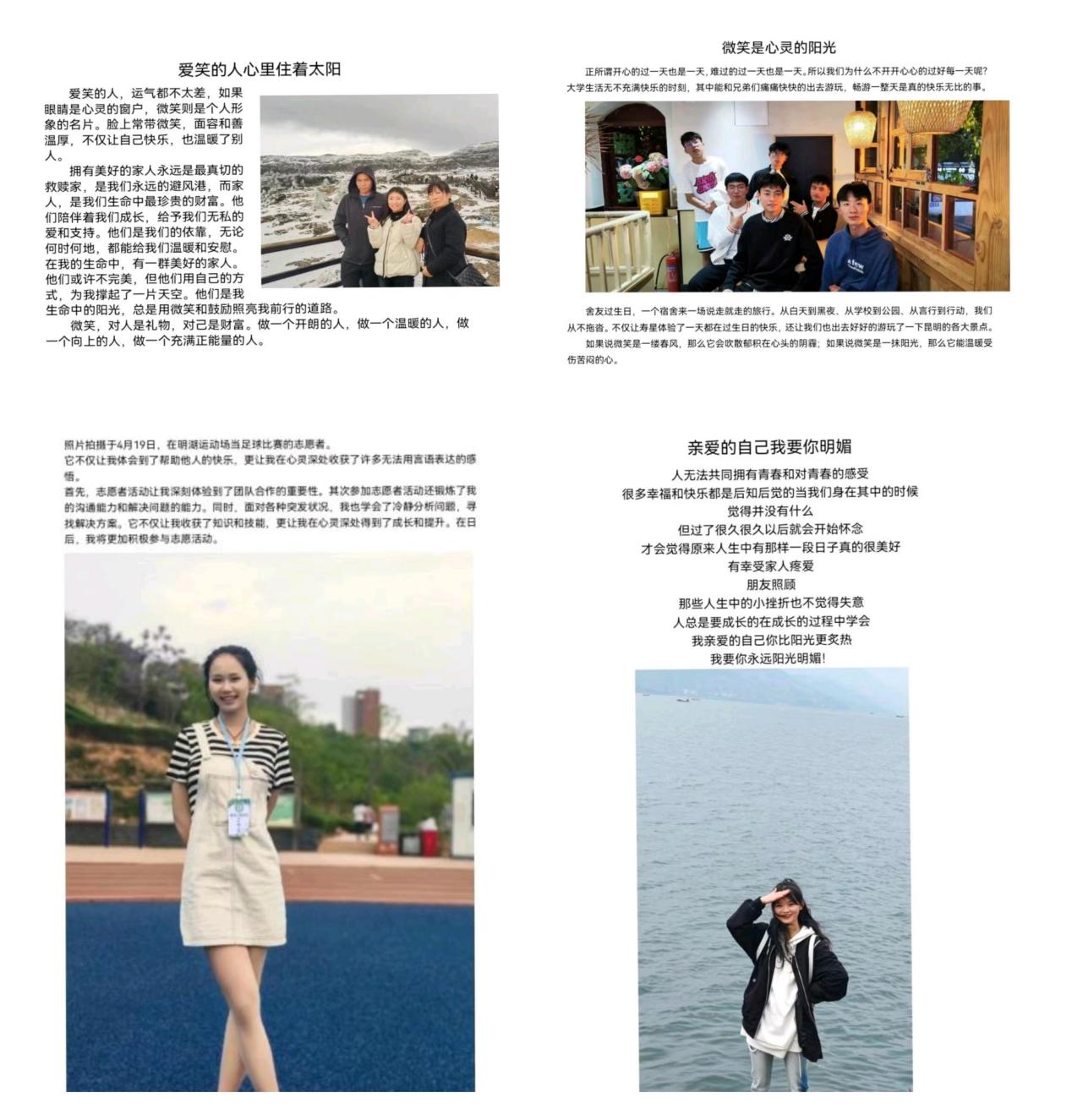 微笑是最美丽的语言,为了让同学们在忙碌的学习生活中能够以乐观的心态来笑对人生百态。beat365官方网站举办了“微笑是心灵的阳光”图文征集活动,此次活动面向beat365官方网站全体在校学生,同学们不仅积极参与,还展示出了自己优秀的参赛作品。本次活动在评委老师的投票下,从众多的参赛作品当中评选出了一、二、三等奖以及参与奖。