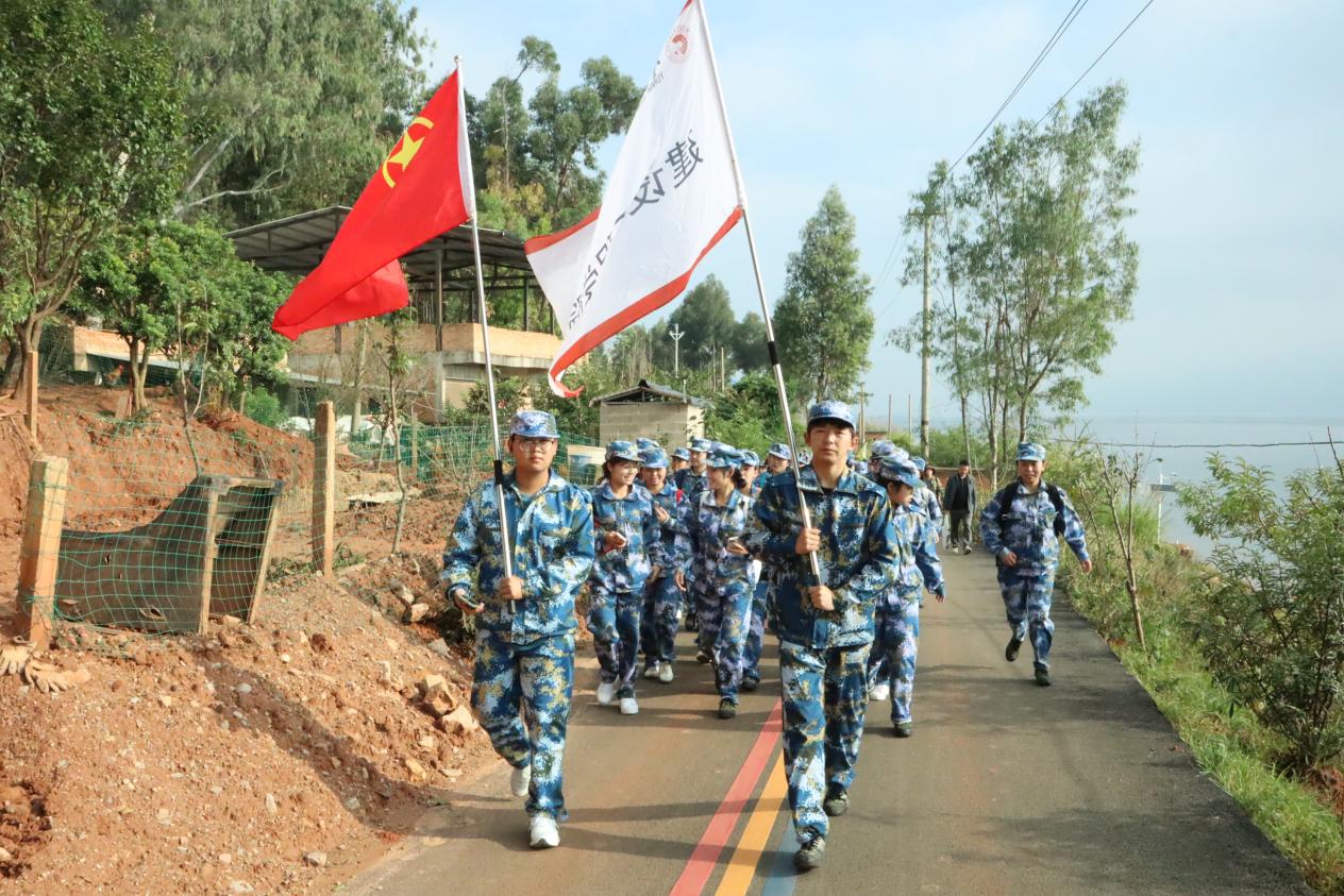 一路上,军旗飘扬,口号嘹亮。“一!二!三!四!” 的口号声此起彼伏,在空气中回荡。同学们迈着有力的步伐,向着目标前进。汗水顺着脸颊滑落,湿透了衣衫,但没有人喊累,没有人退缩。大家相互扶持,相互鼓励,共同克服着路途的遥远和身体的疲惫。