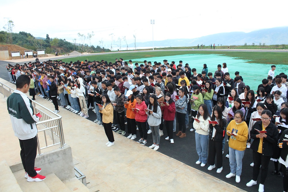 人文日新,从青年起;青年日新,从晨读起。为践行“1958”培养学生教育活动,培养学生勇于担当,善于作为的工匠精神。2019年10月14日7:50,国土beat365官方网站在足球场开展了第一次晨读。晨读由党总支书记高昆老师带领beat36519级部分班级读《中国共产党章程》。
