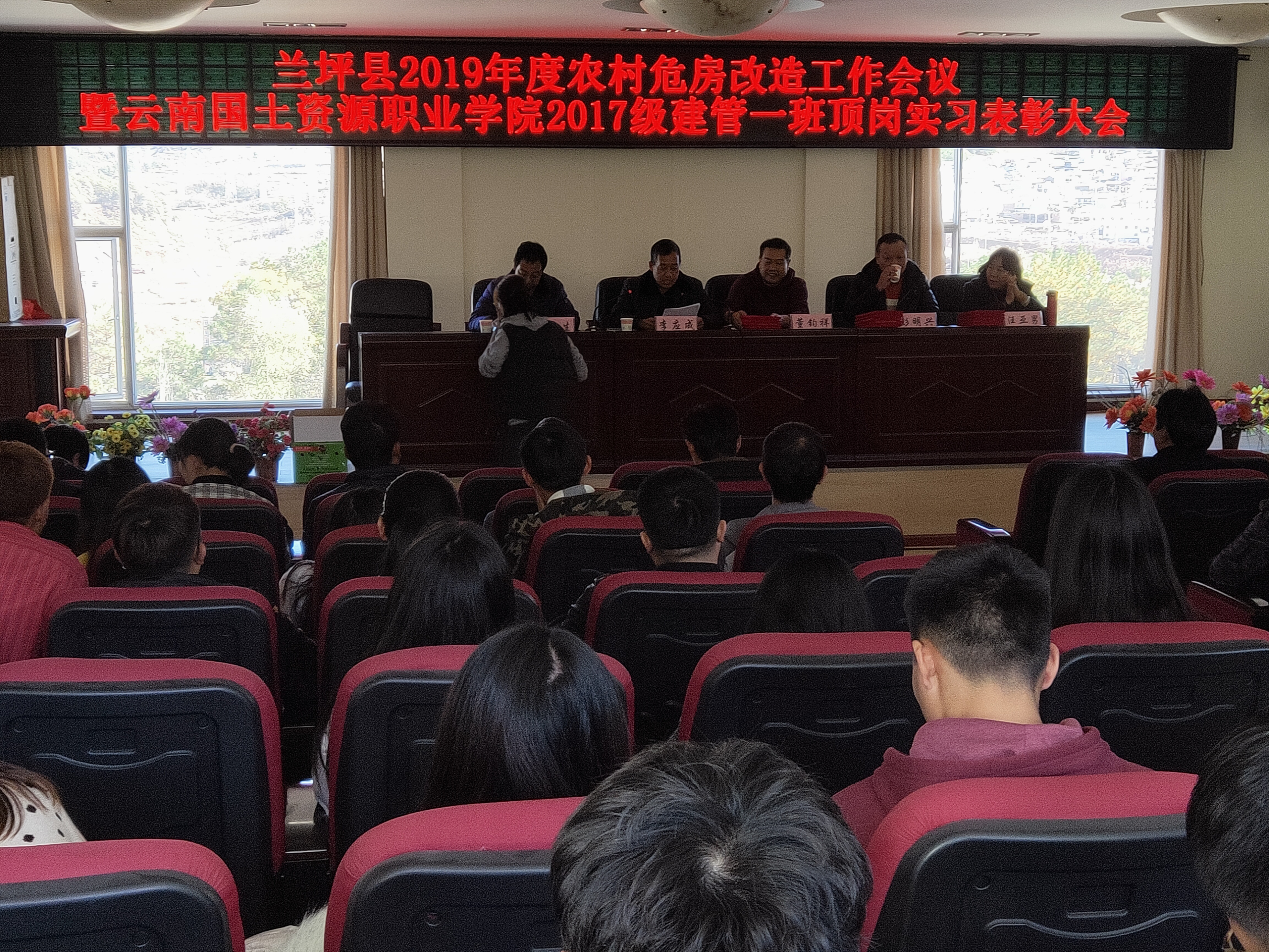11月底beat365官方网站如期圆满完成兰坪县的农村危房改造工作。此项工作是由beat365国土beat365官方网站17级建筑经济管理1班的56名同学参与完成,为总结利用顶岗期间学生参与具体项目学校在人才培养方面的取得的成绩及被培养人在项目中的收获,学校于2019年11月29日下午14点在兰坪县住建局会议室召开农村危房改造顶岗实习总结大会,同时对在农村危房改造项目中表现优秀的学生进行表彰。兰坪县住建局李应成局长、张吉生副局长,beat365官方网站董钧祥副校长,国土beat365官方网站彭明兴院长,继续教育学院汪亚男院长出席会议,各乡镇顶岗实习指导老师与住建局工作人员、全体实习生共同参会。
