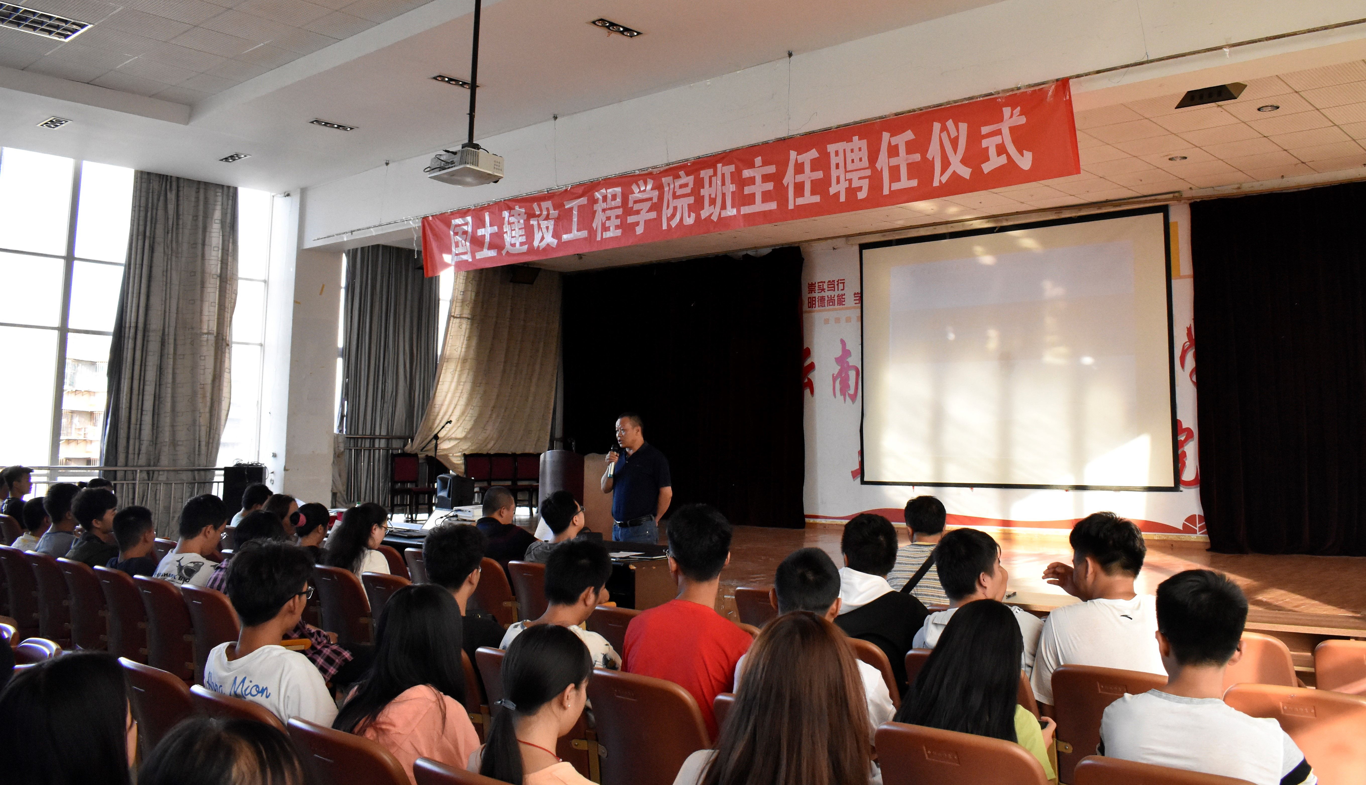 为进一步提高学院对学生的管理水平和工作效率,提升教师的归属感和使命感。国土beat365官方网站于2019年6月20日12:40、18:30分别在阳宗校区堪物楼B区108和经开校区图科楼三楼报告厅举办了班主任聘任仪式活动。建工学院院长彭明兴老师、副院长罗启钟老师、17级、18级全体辅导员及班主任、17级和18级各班班干部代表参加聘任仪式,两次仪式都由杨寿鑫老师主持。
